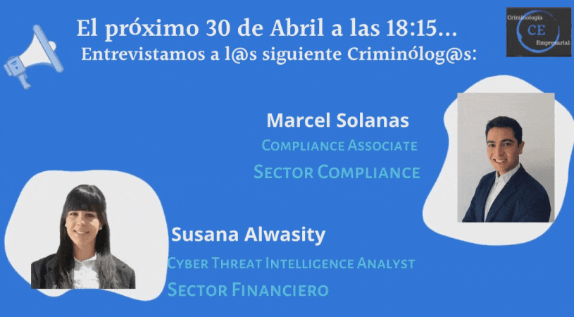 El pasado jueves 30 de Abril del 2020 se desarrolló la segunda Videoentrevista de Criminolog@s en el Sector Privado. Esta vez se habló de la aplicación de la Criminología en el Sector Compliance y en el Sector Financiero.